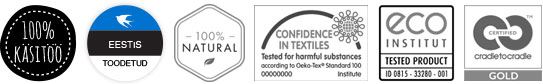 Kamjo používá ve svých postelích pouze čisté přírodní materiály, jako je vlna, bavlna a latex Vita Talalay® vyrobený z mízy kaučuku stromy, které poskytují zdravé a luxusní klima pro spaní. Postele Kamjo jsou 100% ručně vyráběny estonskými řemeslníky pouze s použitím nití a jehly.