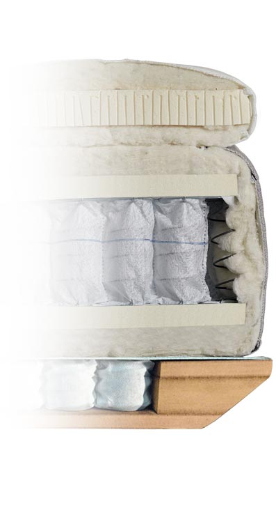 V posteli Carpe Noctem o rozměrech 180x200 cm se nachází celkem: 10 800 g vrstev vlny (60 %) a bavlny (40 %) a 1 658 taštičkových pružin. Hmotnost postele o rozměrech 180x200 cm je celkem 200 kg.
